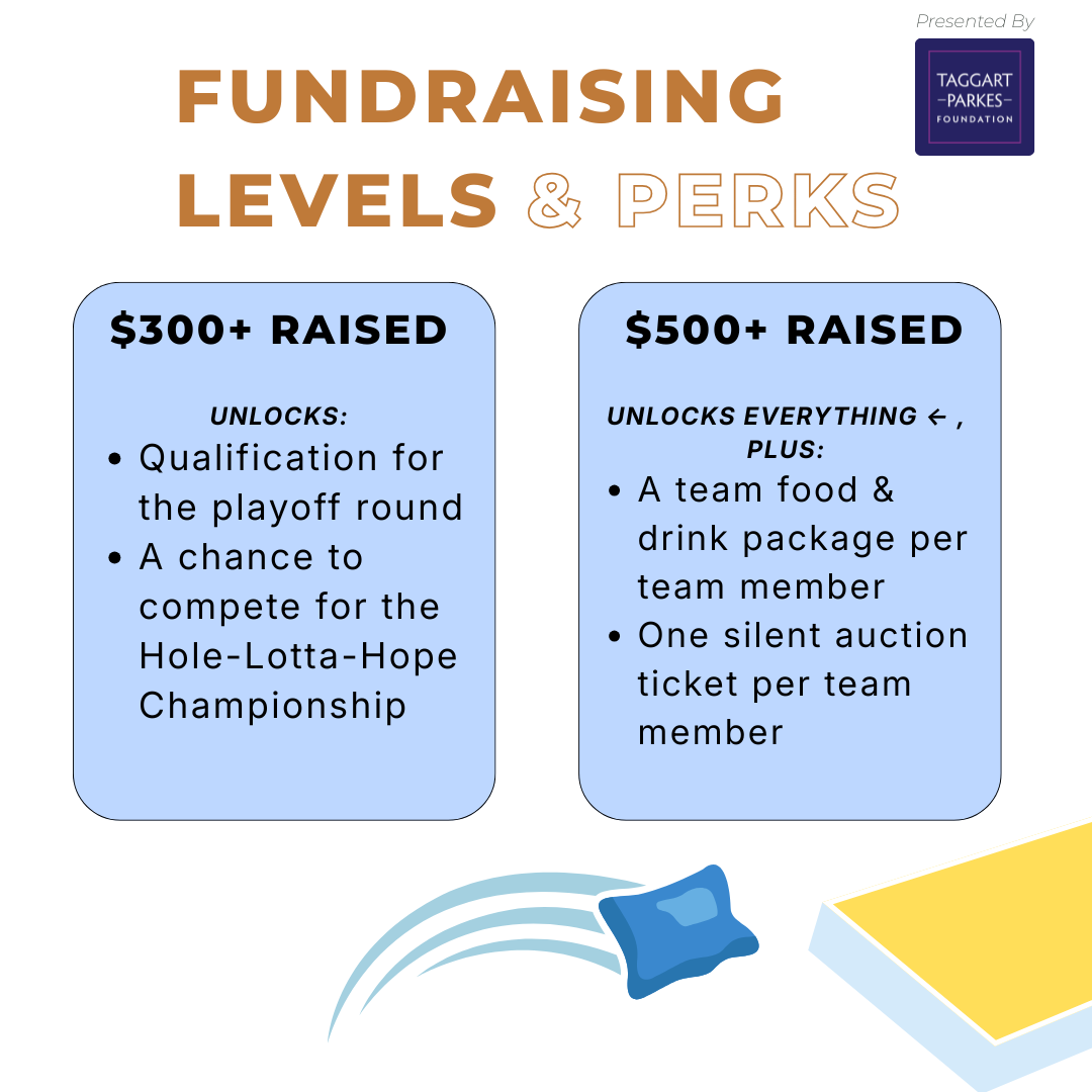 Hole-Lotta-Hope is designed to be accessible, community-driven, and impact-focused. Registration is free, and instead of paying an entry fee, teams fundraise to unlock perks, advantages, and opportunities to compete for the championship title.