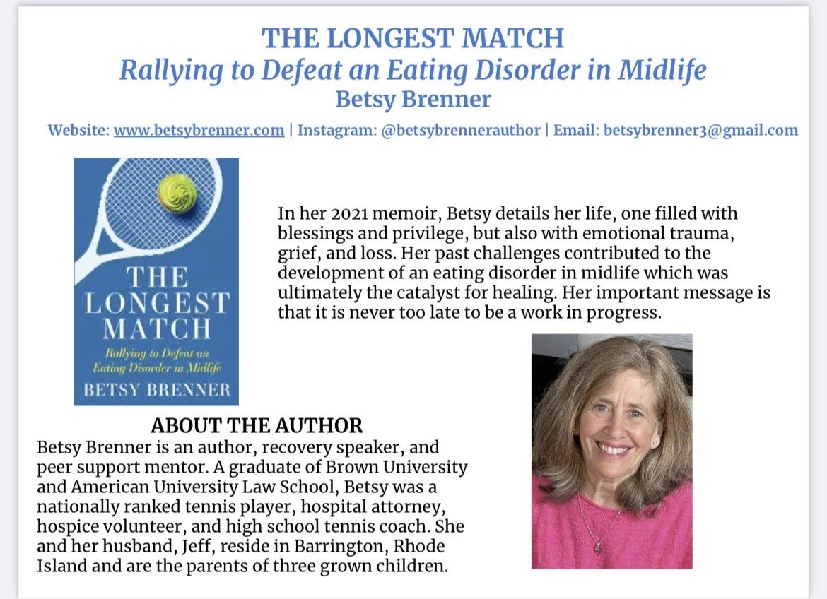 The Longest Match: Rallying to Defeat an Eating Disorder in Midlife with Betsy Brenner | February 4th at 6:00pm